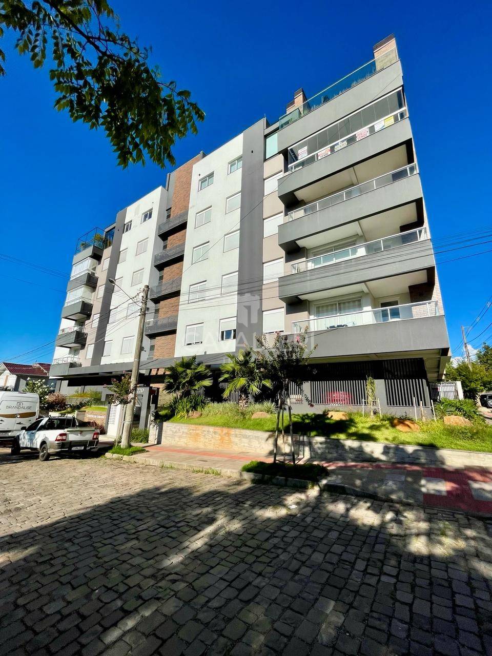 - Amplo espaço com canteiros de vegetação em frente